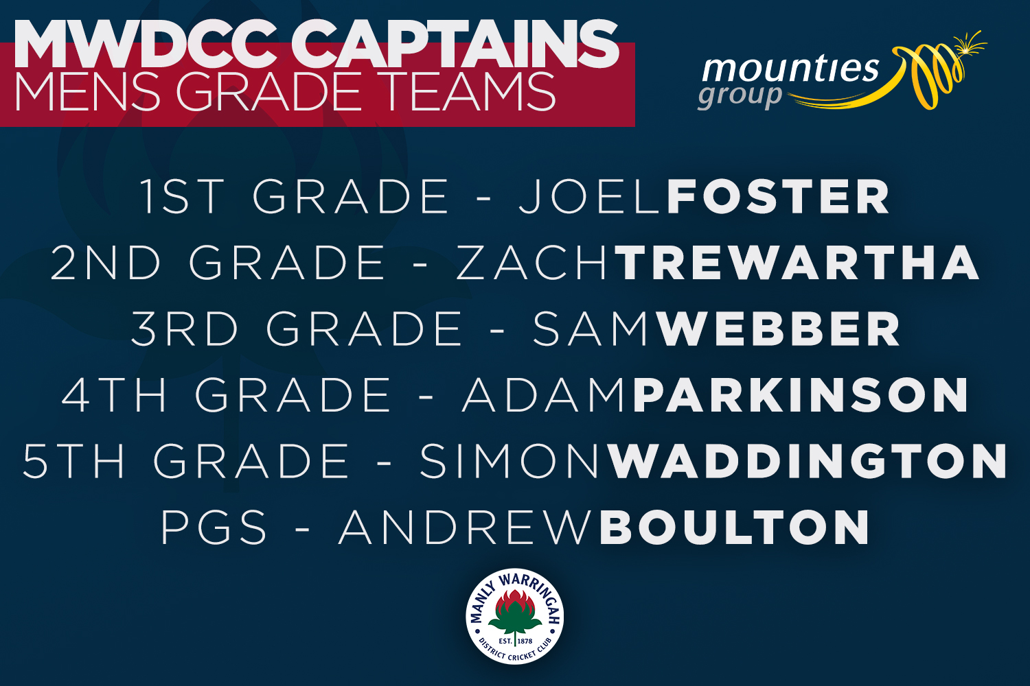 The Mounties Manly Warringah Waratahs are proud to announce Joel Foster as the Men’s 1st Grade Captain for the 2025/26 NSW Premier Cricket season. Joel steps into the role following the leadership of long-time skipper Jay Lenton, who recently stepped down after being appointed as an assistant coach with the NSW Blues. A natural leader...Read More