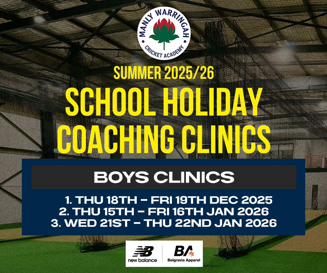 We are pleased to announce the opening our Summer 2025/26 school holiday coaching clinics at the Belgravia Apparel Manly Cricket Academy. Once again run by Academy Coach Andrew Jamieson, the clinics will take place in the December and January school holiday clinics for boys aged 9-14. The success of the 4 accredited coaches per clinic...Read More
