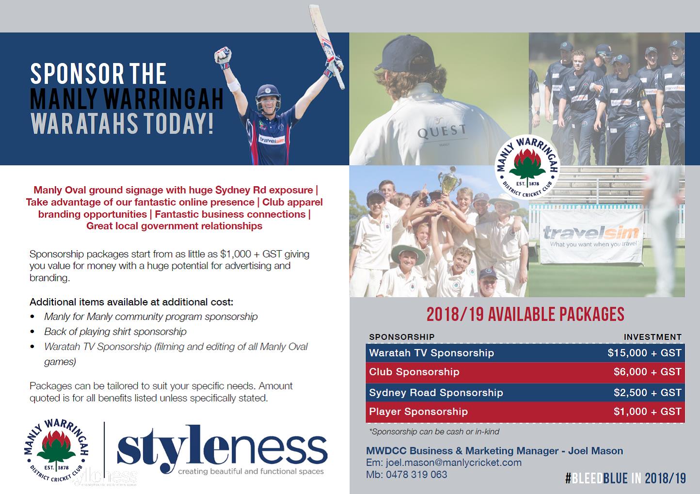 The Styleness Manly Warringah Waratahs are please to release our sponsorship packages for the 2018/19 season.