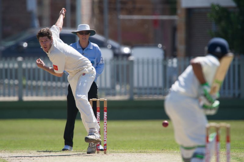 The Sydney slinger delivers again. Matt Alexander bowled beautifully last Saturday vs Fairfield in 2nd grade, proving too good on many occasions despite his large workload. His spell included this gem for a plumb LBW #bleedblue #matto #thommo #whatsthedifference