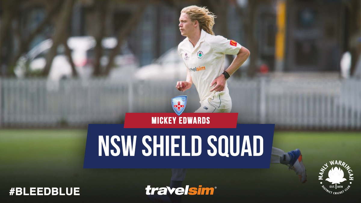 Local junior Mickey Edwards has been selected in the 13 man NSW squad for the upcoming JLT Sheffield Shield match against Western Australia in Perth, beginning on the Thursday 8th February.