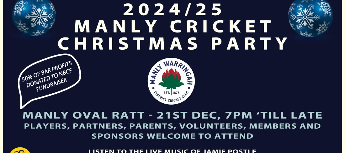 Manly Cricket Christmas Party is happening on Saturday 21st December at Manly Oval Room at the Top. All players, partners, members, volunteers, supporters and sponsors welcome. Guzman Y Gomez at Manly have kindly agreed to cater the evening and we thank them for their gracious...Read More